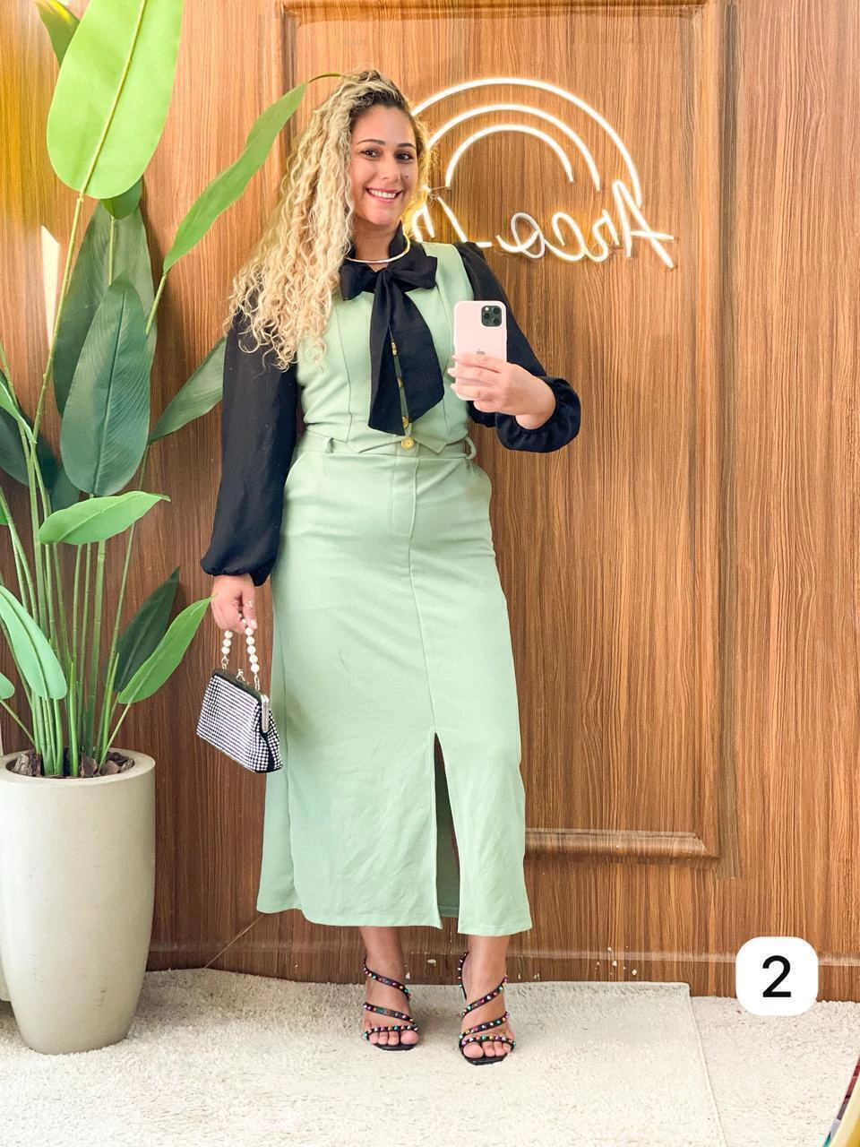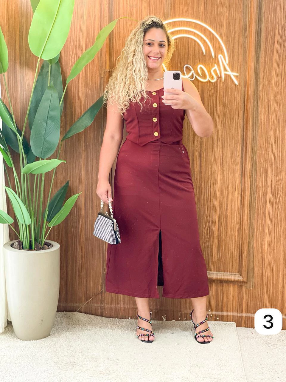 Conjunto em scuba crepe, acompanha as 3 peças, tamanho único, veste do 38 ao 42/44