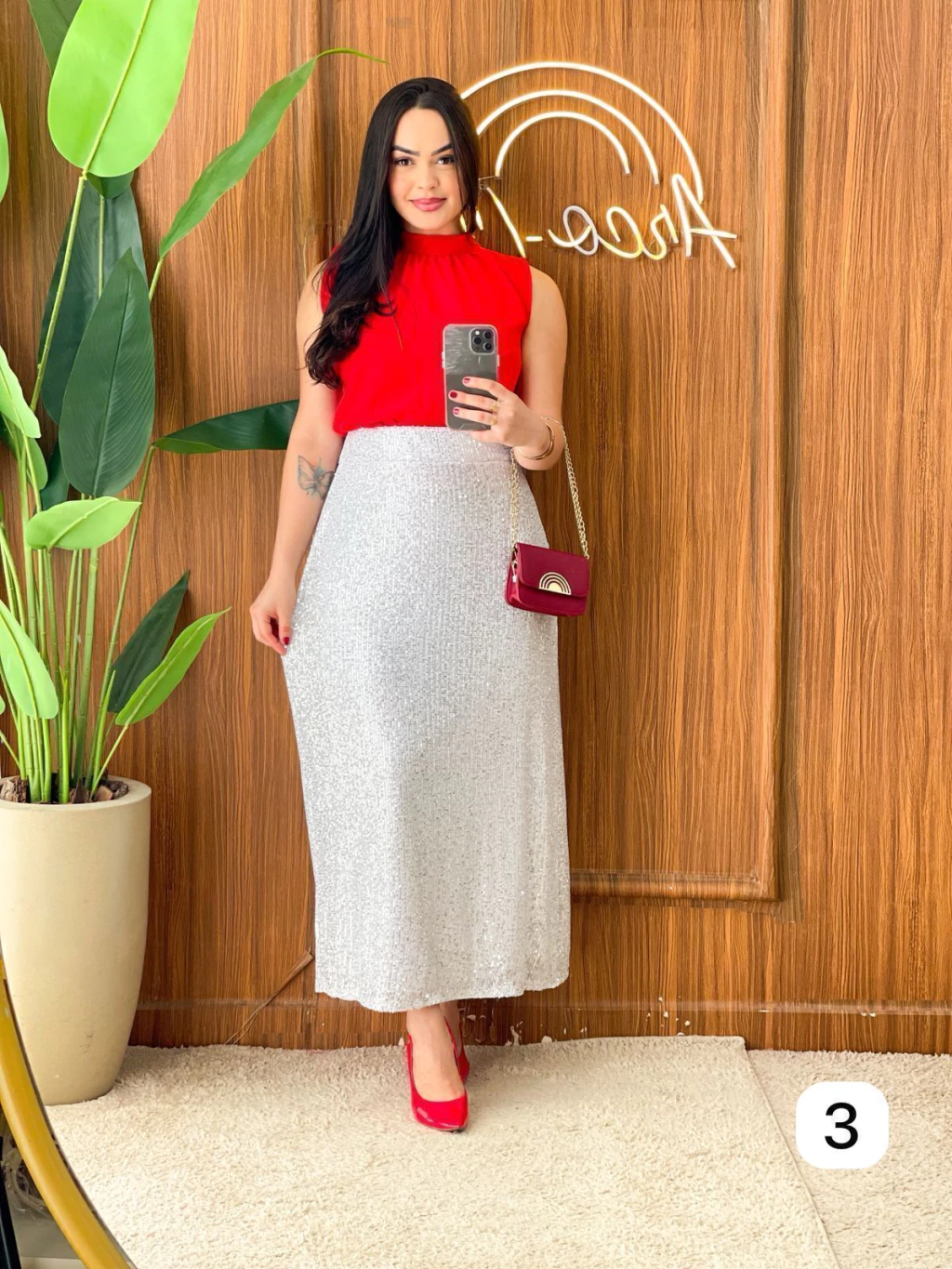 Saia em lurex, forrada, elástex na cintura, fenda na parte de tras, tamanho único, veste do 40 ao 42\44