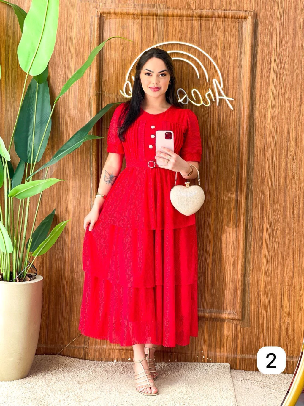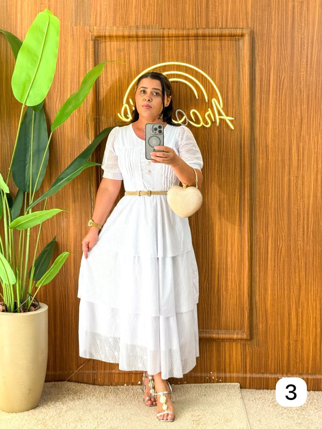 Vestido em renda com babado, aconpanha cinto.