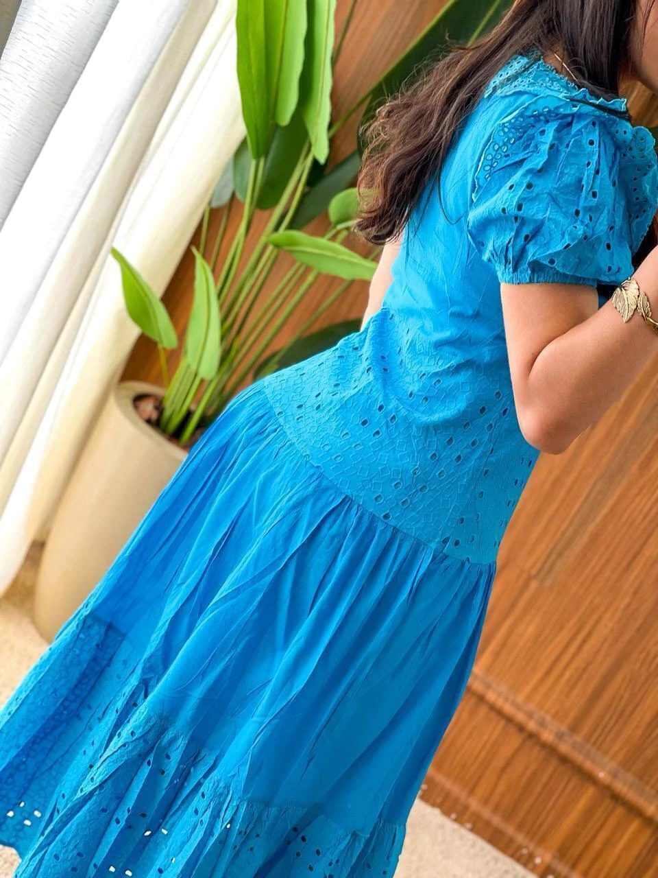 Vestido em laser, elástex nas costas, zíper lateral, tamanho P, M e G