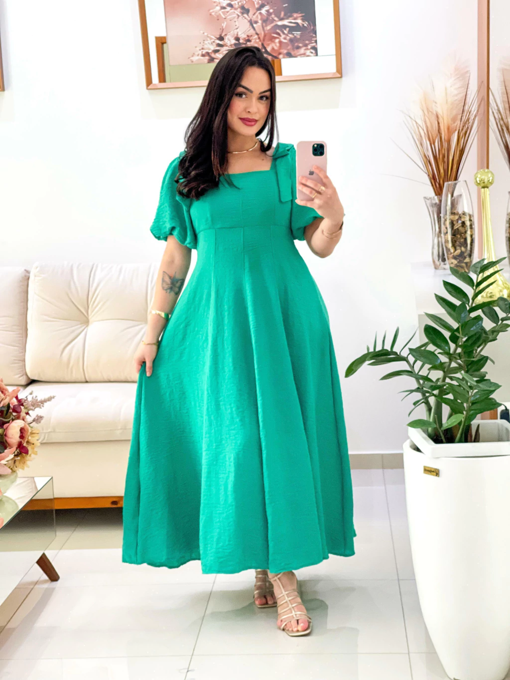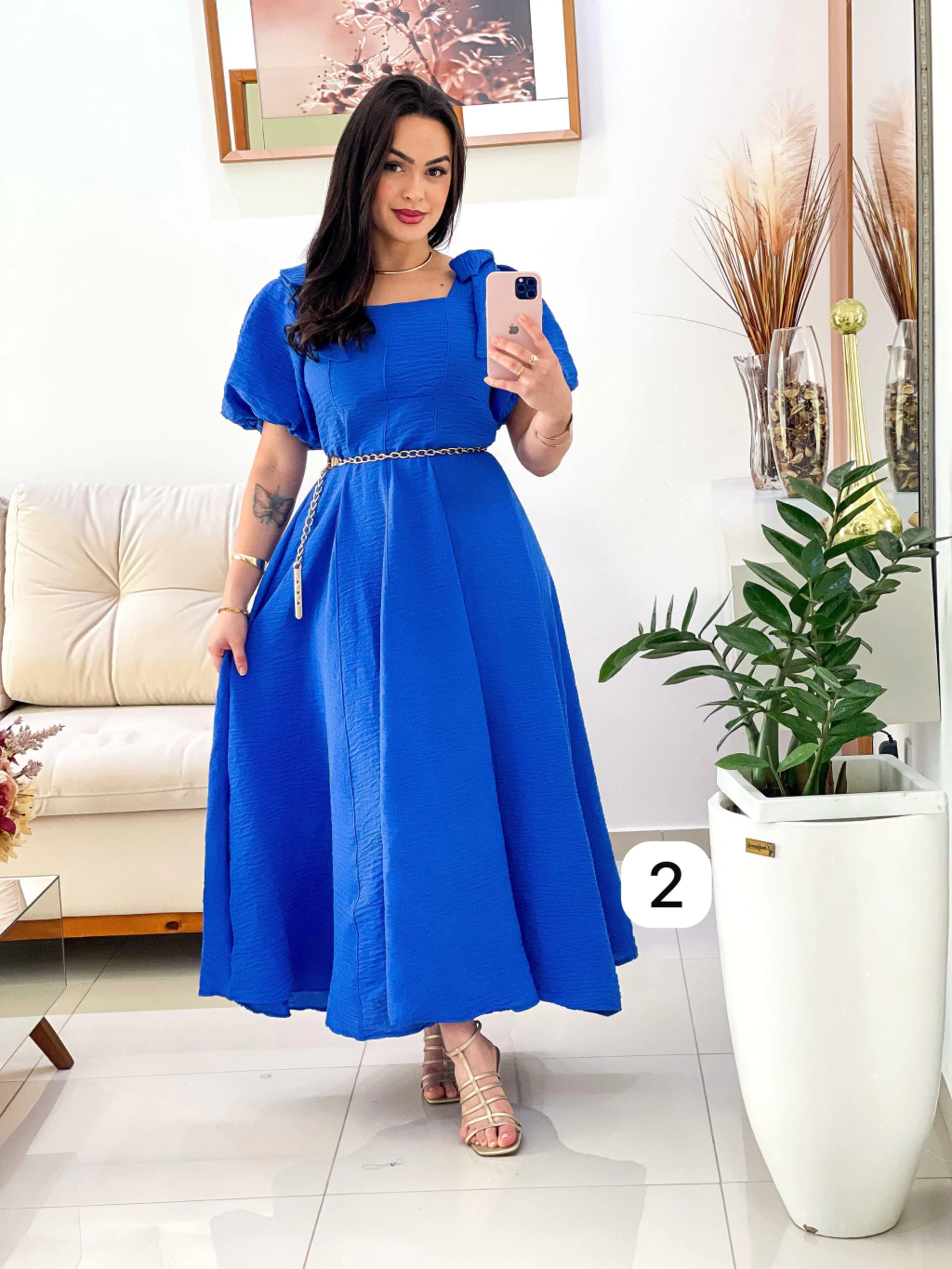 Vestido de tecido linho com detalhes em alto relevo, contém elástex nas costas.