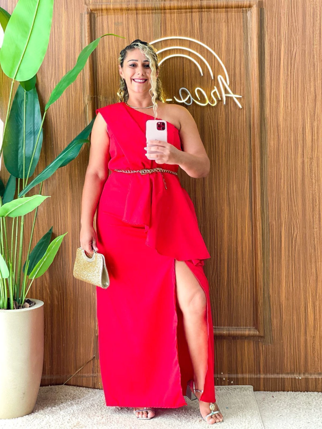 Vestido em cetim, não acompanha o cinto, tamanho único, veste do 40 ao 44